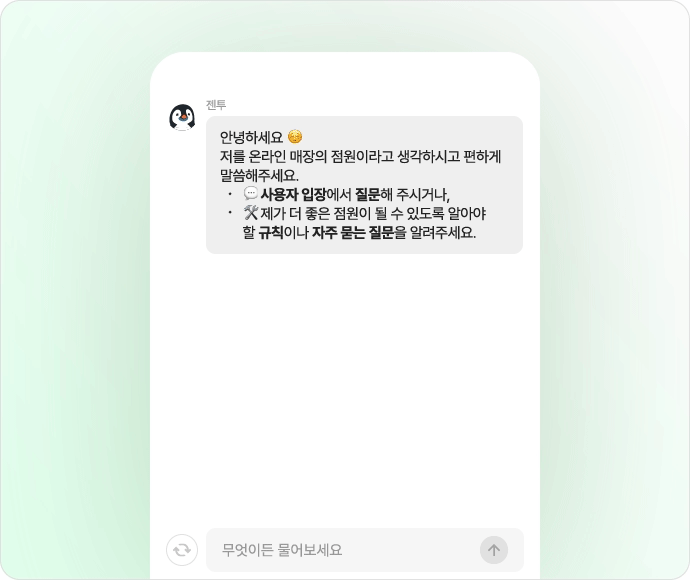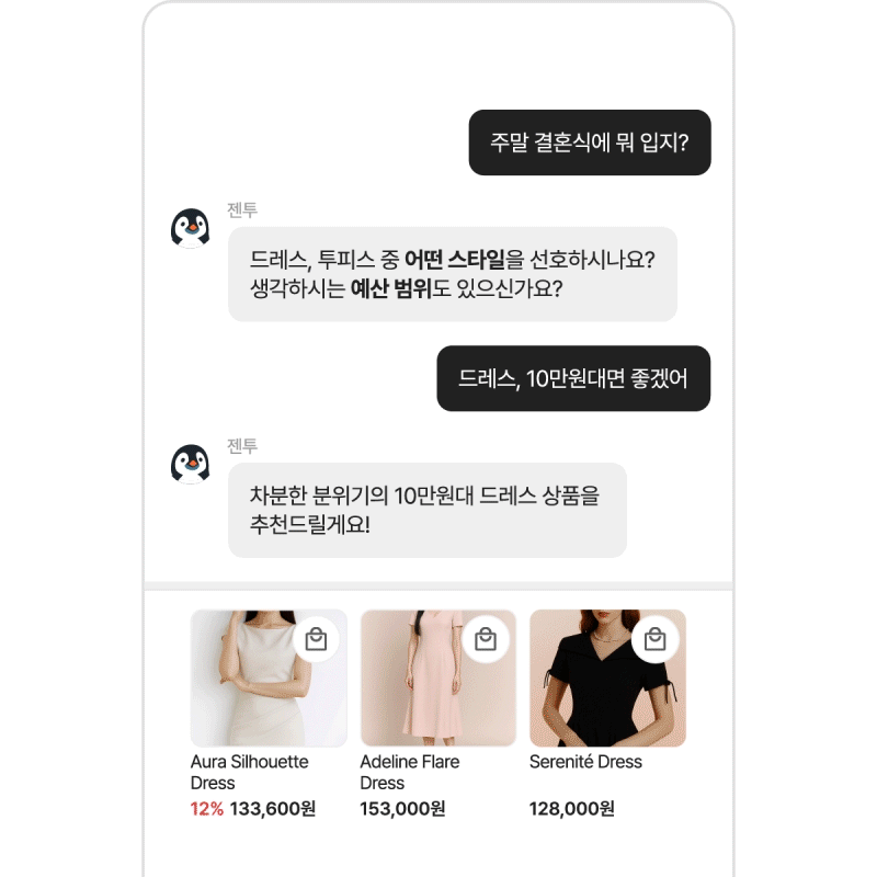 젠투는 실제 점원처럼 고객과 대화하고, 구매 결정을 돕습니다